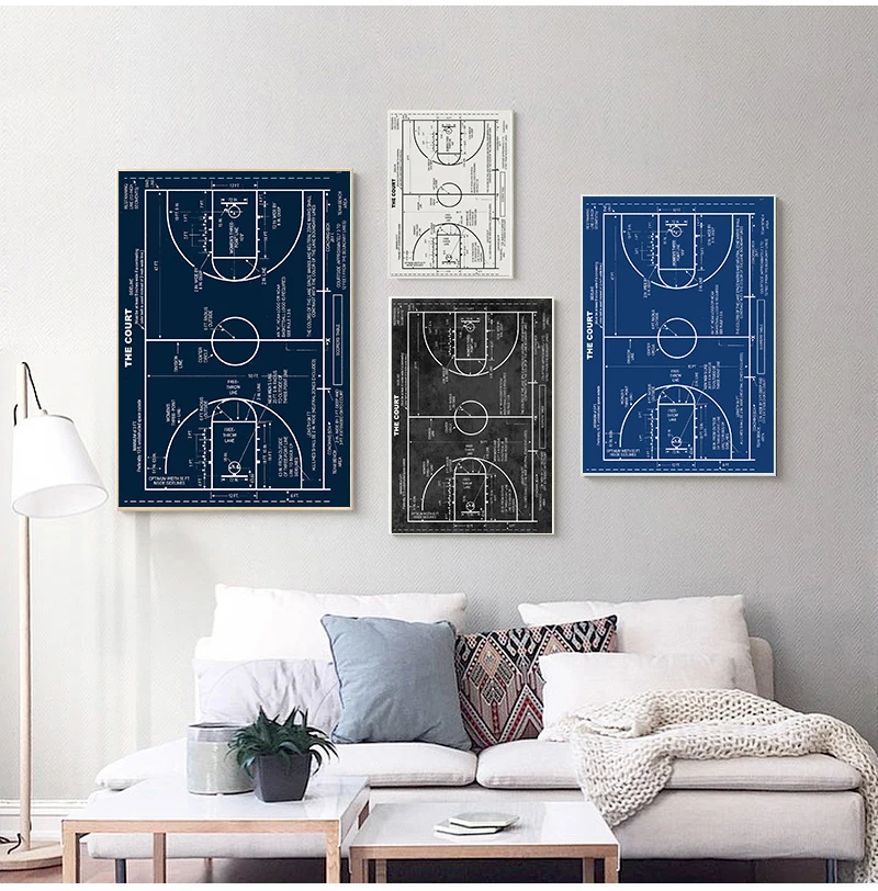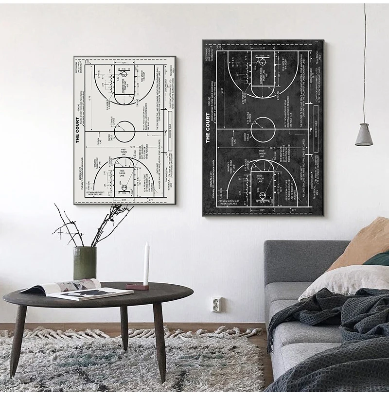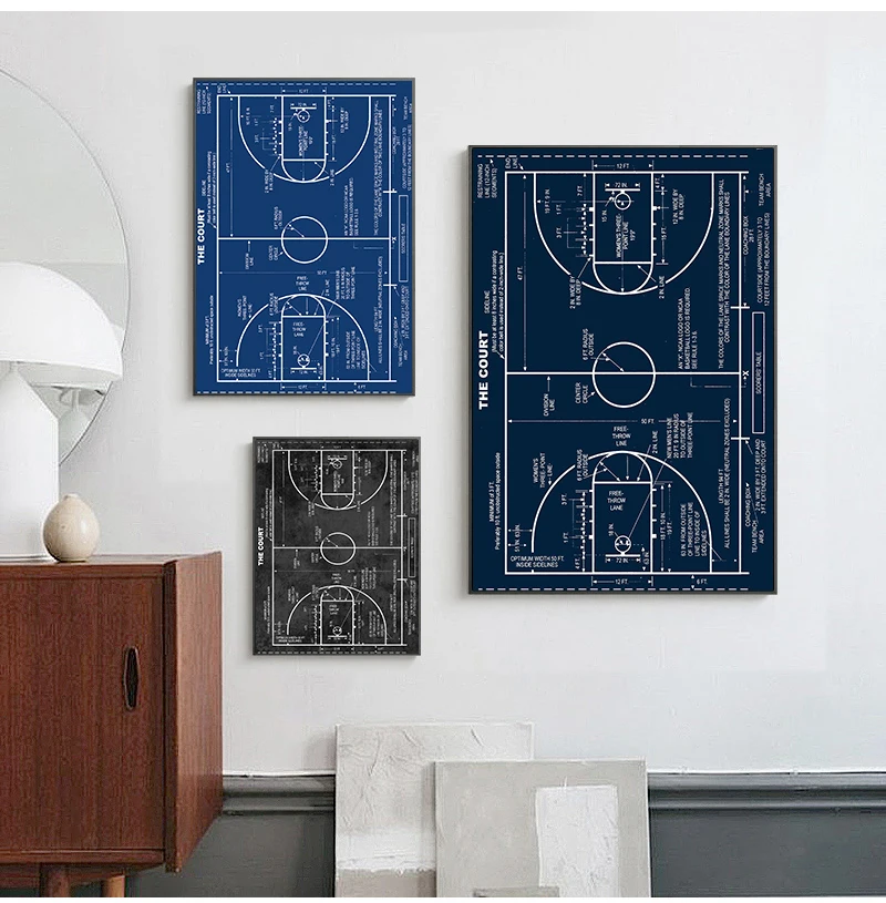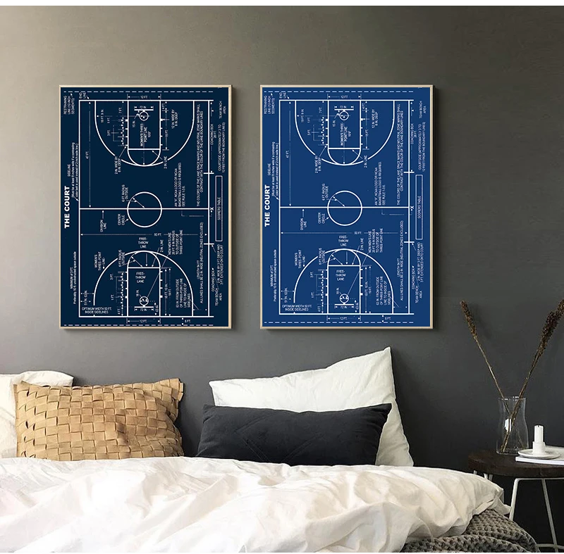 Rid your home of wasted empty wall space with this one-of-a-kind canvas art. The artistic Basketball Court Blueprint canvas design shows the beautiful contrast and presents an elegant touch of artistry that will add a pop of beauty into your home!