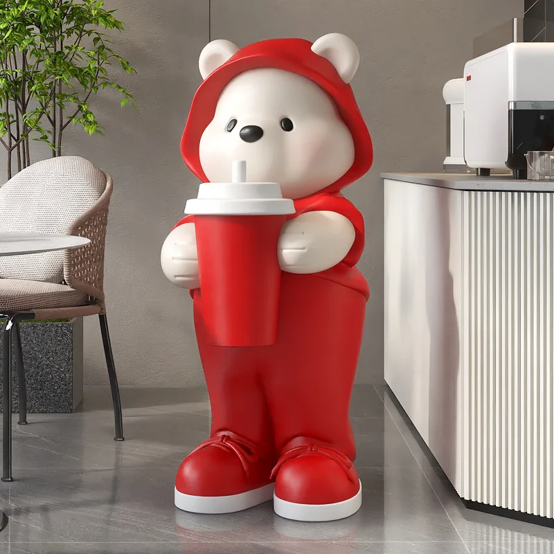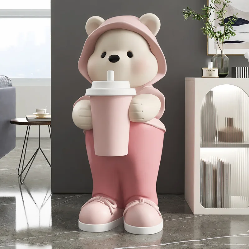 - 1 x High-Quality Cute Bear Milk Tea Floor Decoration Statue