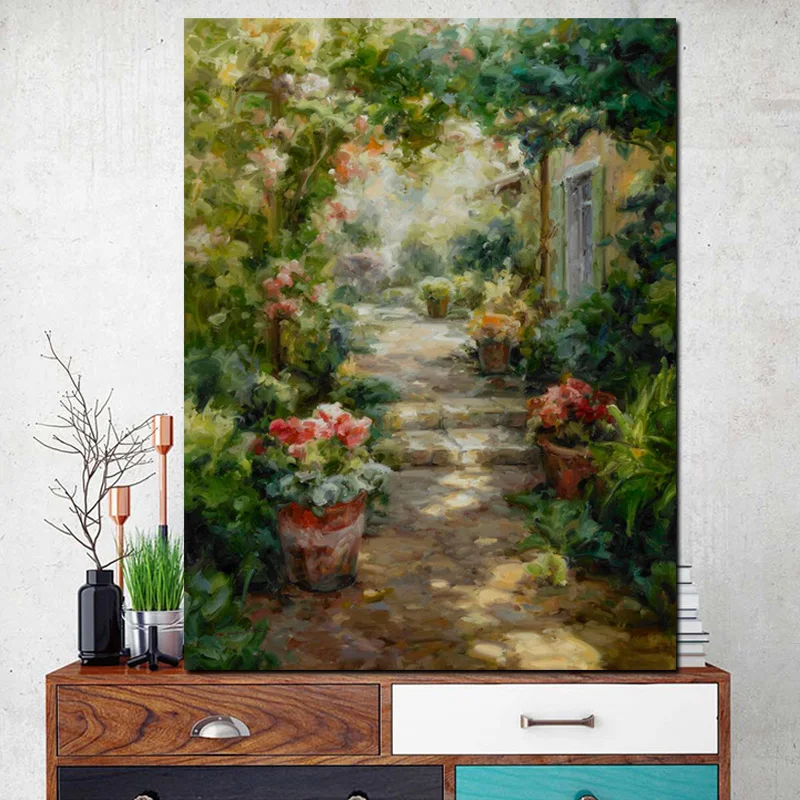 Experience a remarkable transformation within your home as you bid farewell to vacant, unadorned walls with our exquisite Garden House Oil Painting Canvas Art.