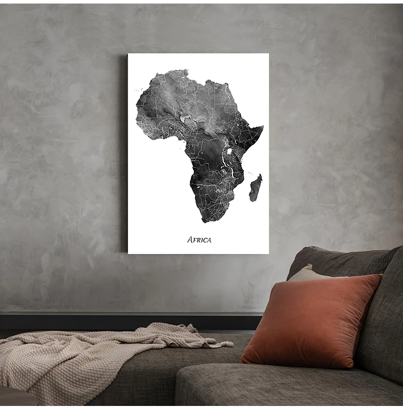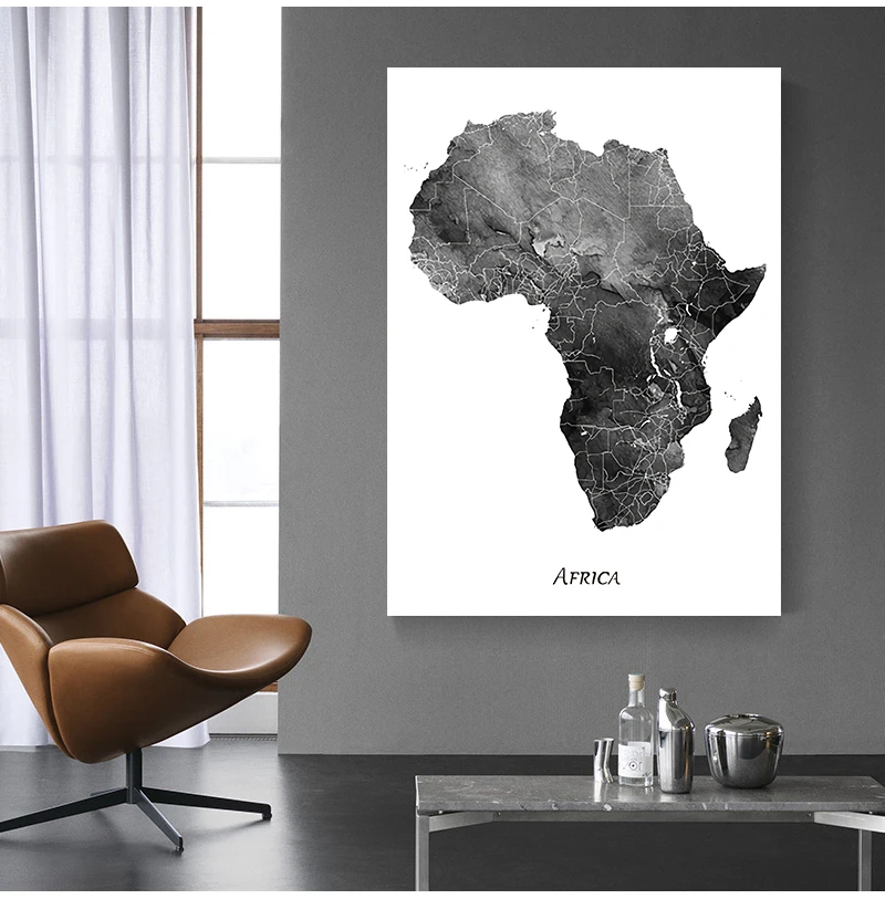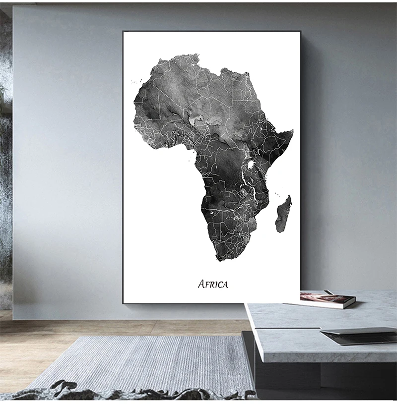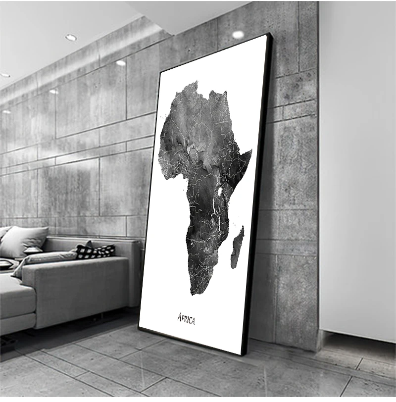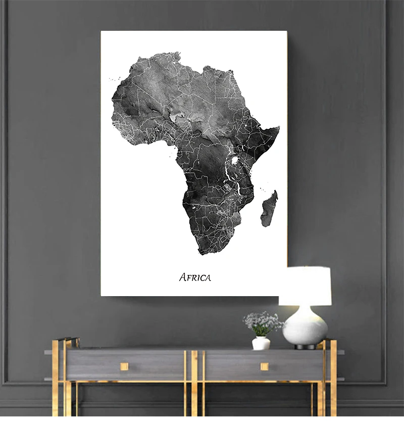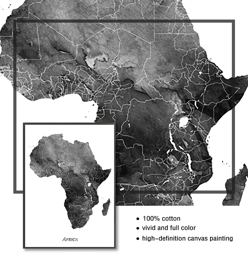 Rid your home of wasted empty wall space with this one-of-a-kind canvas art. The artistic Gray Black and White Map of Africa canvas design shows the beautiful contrast and presents an elegant touch of artistry that will add a pop of beauty into your home!