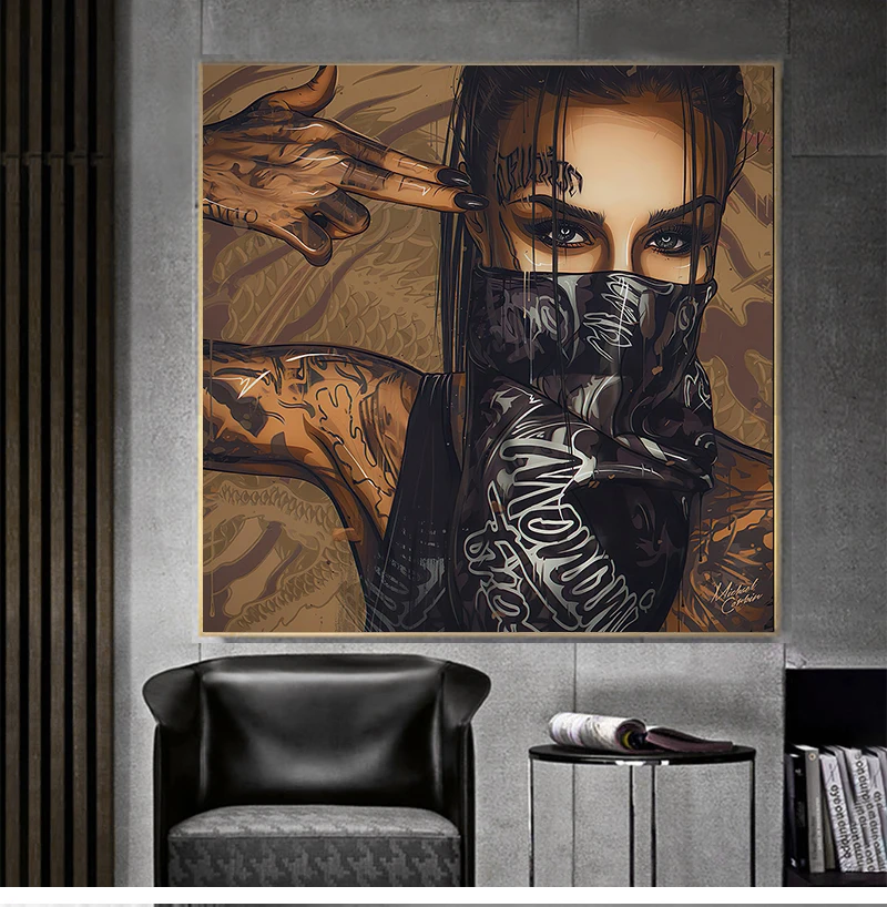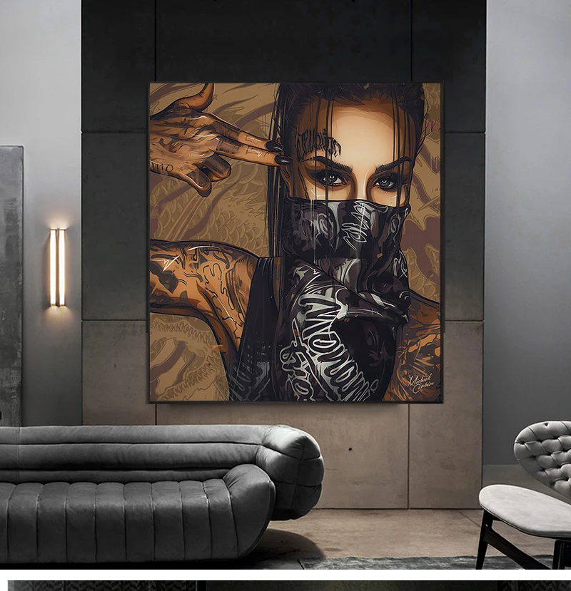 Rid your home of wasted empty wall space with this one-of-a-kind canvas art. The artistic Mask Tattoo Girl Portrait canvas design shows the beautiful contrast and presents an elegant touch of artistry that will add a pop of beauty into your home!