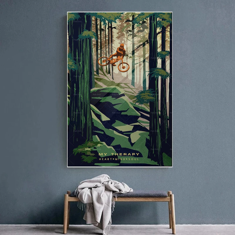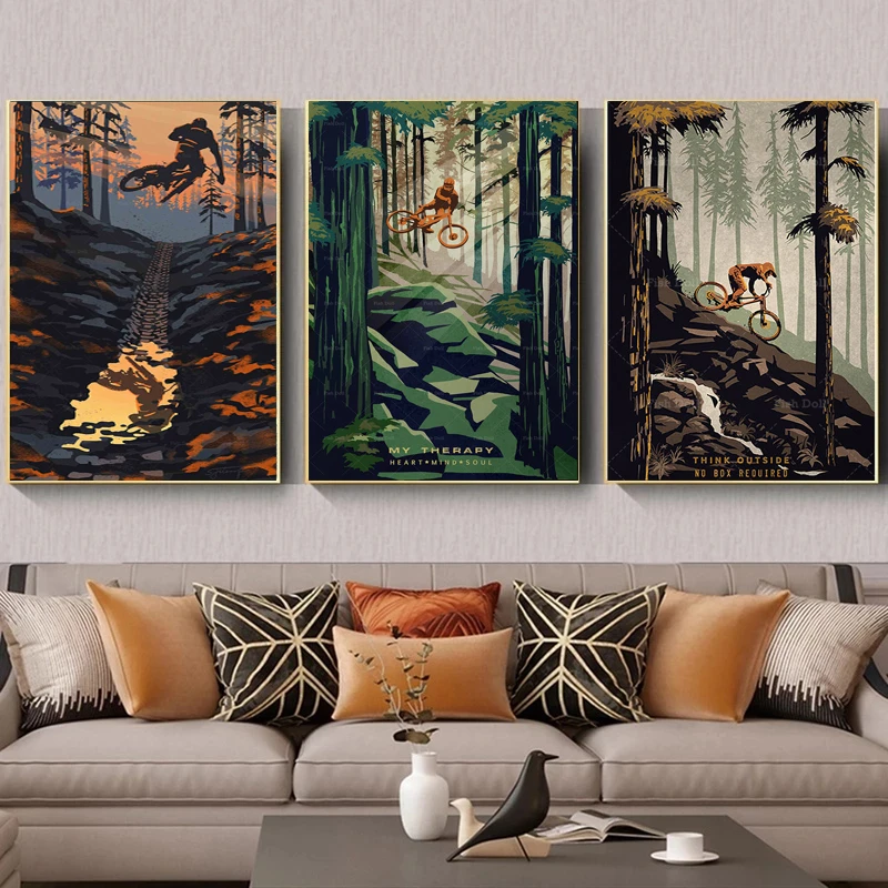 Rid your home of wasted empty wall space with this one-of-a-kind canvas art. The artistic Mountain Biking canvas design shows the beautiful contrast and presents an elegant touch of artistry that will add a pop of beauty into your home!