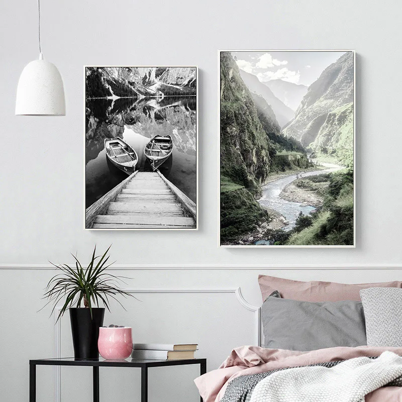 Rid your home of wasted empty wall space with this one-of-a-kind canvas art. The artistic Scandinavian Black White Nature Landscape canvas design shows the beautiful contrast and presents an elegant touch of artistry that will add a pop of beauty into your home!