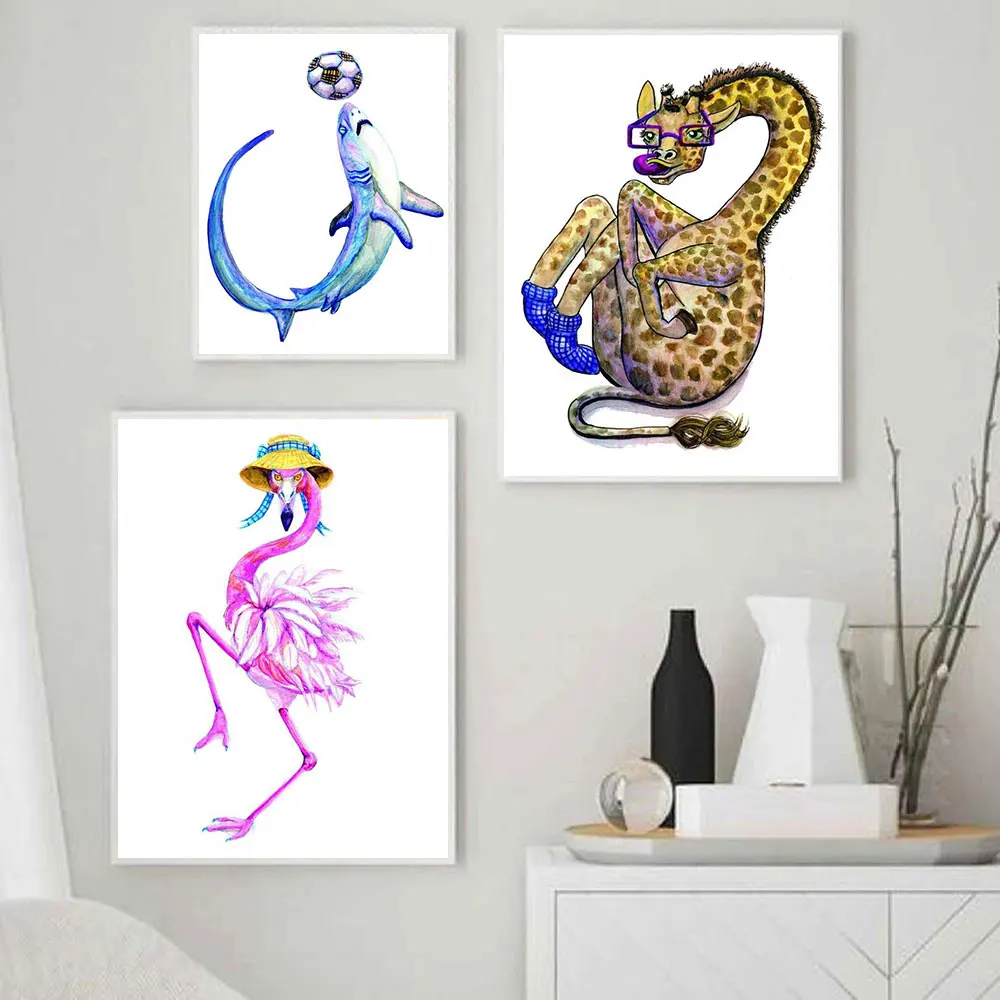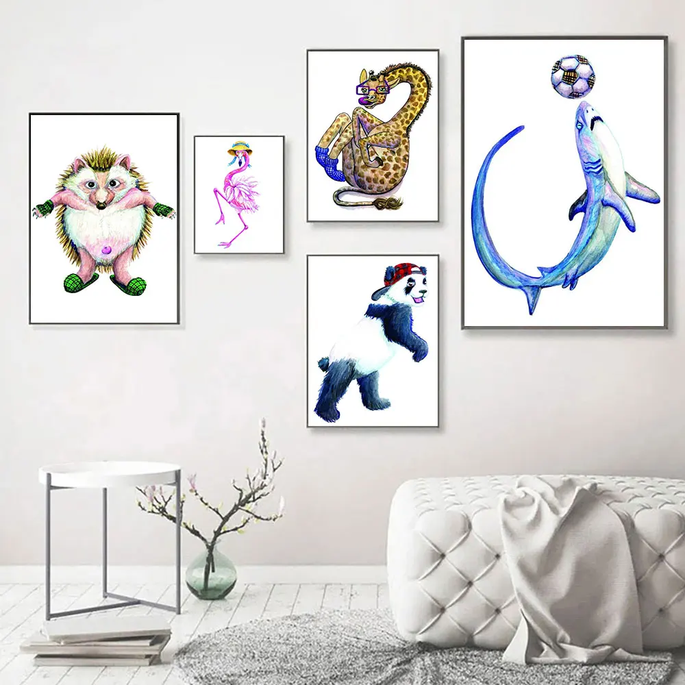 Watercolor Animal Panda Flamingo Hedgehog Canvas Art