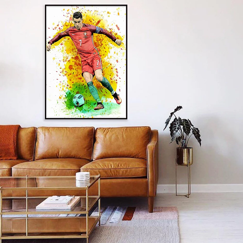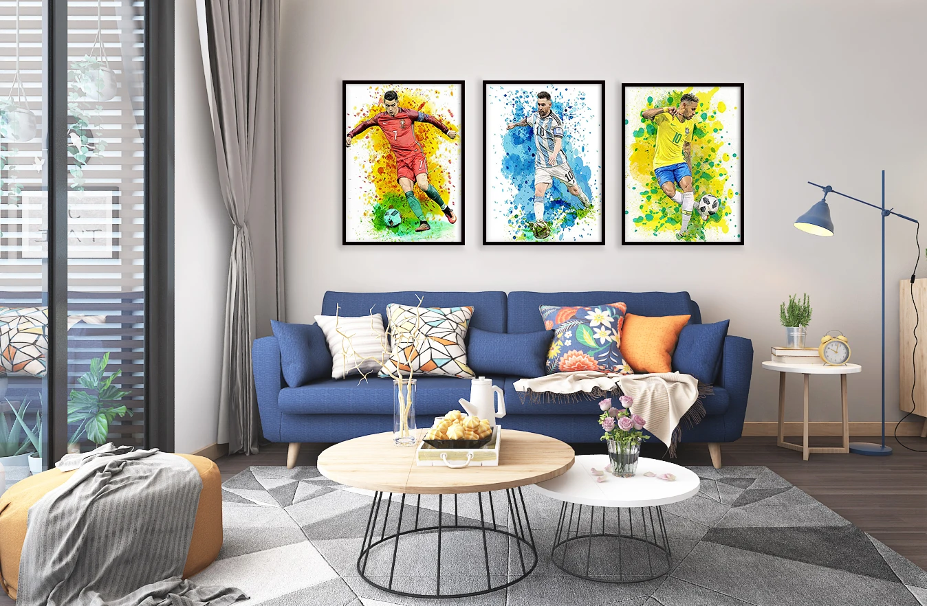 Experience a remarkable transformation within your home as you bid farewell to vacant, unadorned walls with our exquisite Watercolor Soccer Star Football Wall Art Canvas.